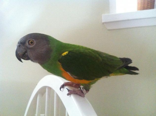 The parrot in the picture above is Sadie, a 15 year old Poicephalus/Senegal. Her caregiver passed away and she has been living alone in a vacant house for about a year, only seeing people when she was fed by her owners family. She's currently being fostered by a volunteer at the Parrots First animal rescue in Los Angeles, California. She's very fun and interactive and loves to receive tons of attention from people.